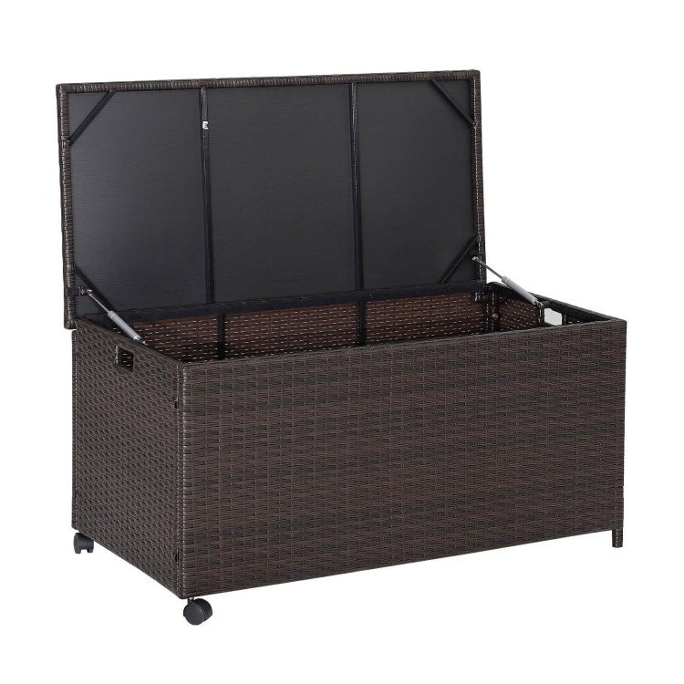 2.Solid Steel and Durable Rattan: The main frame of the storage box is constructed of heavy-duty steel, which is anti-deformation and rustproof. Moreover, the additional legs in the middle highly improve the overall stability. Wrapped with well-woven and colorfast PE rattan, the storage container not only looks elegant, but also withstands long-time outdoor use.