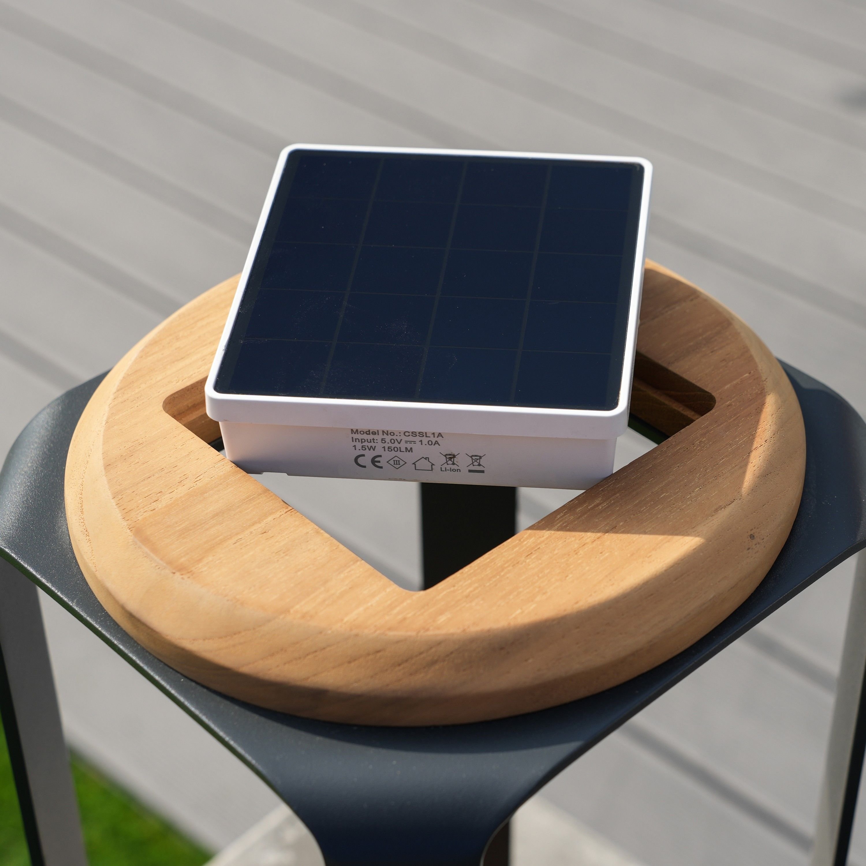 16.81"/12.01"H Outdoor lighting Aluminum Solar LED Lantern with Teak, USB Charging 16.81"/12.01"H Outdoor lighting Aluminum Solar LED Lantern with Teak, USB Charging 16.81"/12.01"H Outdoor lighting Aluminum Solar LED Lantern with Teak, USB Charging