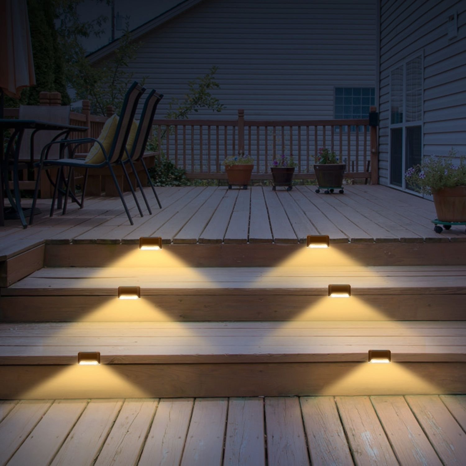 Home > 4Pcs Solar Powered LED Step Lights Outdoor IP55 Waterproof Dusk To Dawn Sensor Fence Lamps